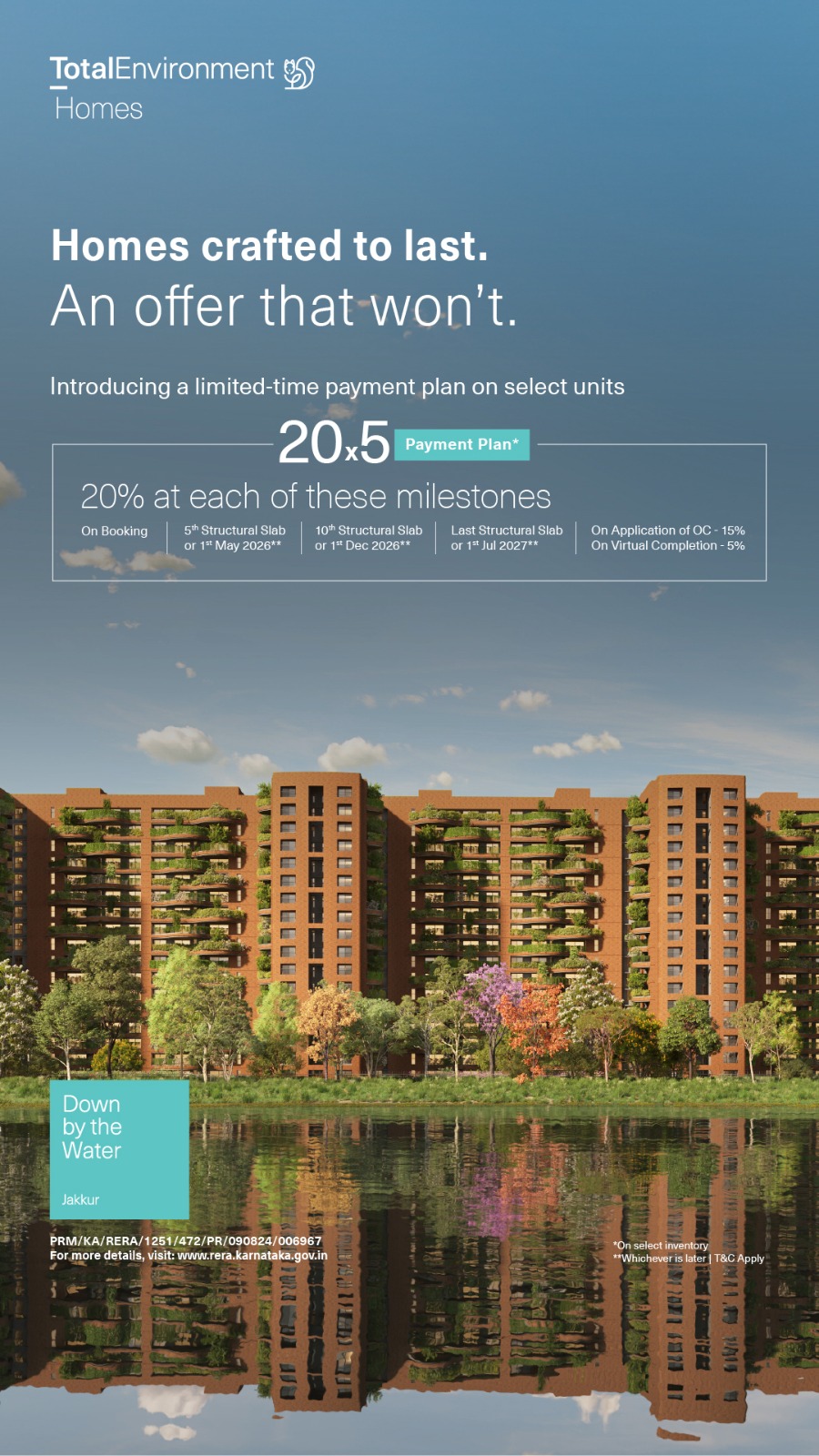 Welcome to Total Environment Down by the Water, an exciting project crafted by Total Environment Homes. Situated adjacent to the serene Jakkur Lake in Bangalore, this development promises a harmonious blend of nature and luxury living. The project's concept revolves around creating beautiful homes adorned with green roofs, ensuring not just aesthetic appeal but also environmental sustainability.